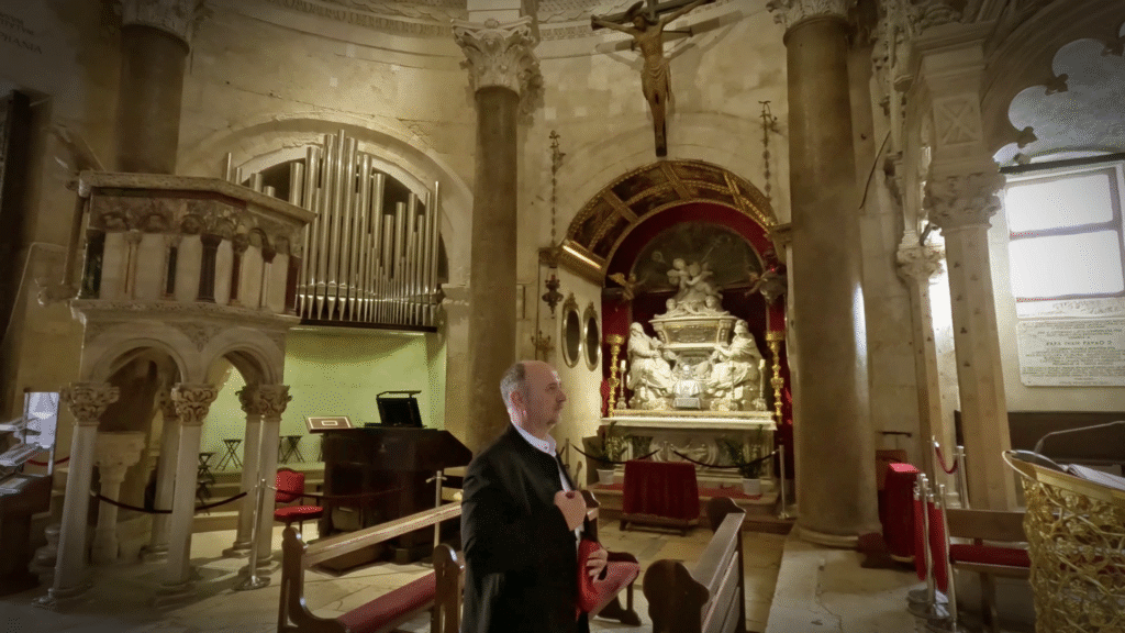 It was made with the support of the Central State Office for Croats Abroad, to whom we extend our sincere gratitude. We also express special thanks to the churches and pastoral staff of the parishes of St. Mark in Zagreb, St. Domnius in Split, and St. Blaise in Dubrovnik for their kindness and permission to film.